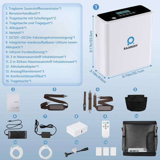 Ver todos os detalhesRAAROXY 5L Tragbarer Sauerstoffkonzentrator MAF052+Zusätzlicher 16-Zellen-Akku