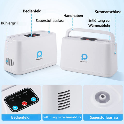Ver todos os detalhesRAAROXY 3L/min Tragbarer Sauerstoffkonzentrator mit kontinuierlichem Durchfluss RS01
